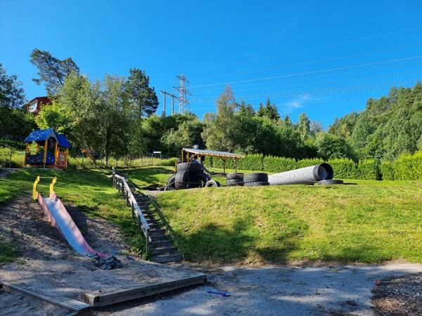 Vårt store fine uteområde - venter på mye lek, latter og morro 😊😊